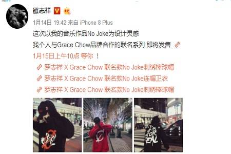 原来,1月14号,罗志祥在微博上发布了新歌,此歌灵感也将和女友品牌合作联名发售。意思就是,借自个的歌给女友服装打广告咯,而且微博中还有发布了好几个宝贝链接。此举也就引起了诸多粉丝的不满,直指罗志祥未能准确分清私生活与工作,也掺杂着责怪意味。于是,罗志祥就直接关掉了评论功能,本以为粉丝们能稍微消停下,但事与愿违,粉丝们就更加不满了。